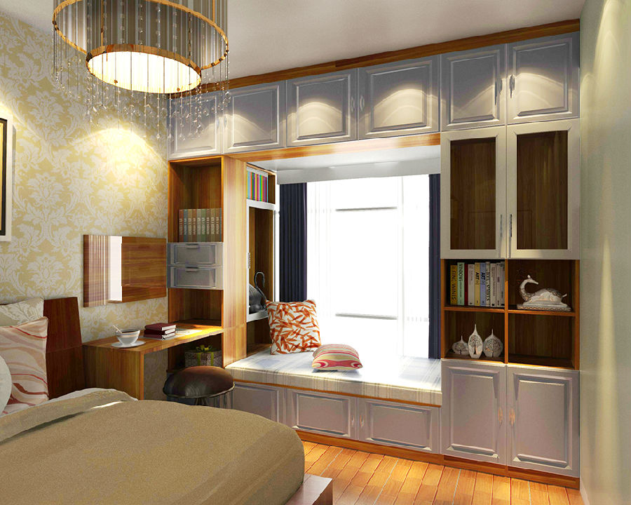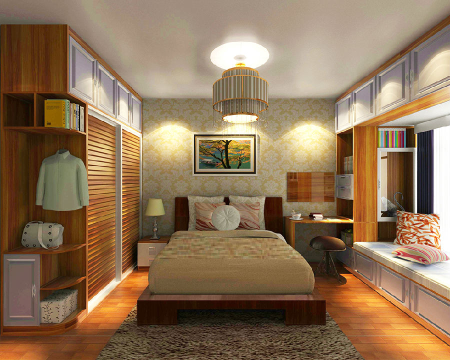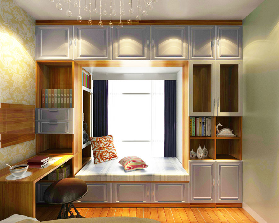 時尚洋氣的榻榻米造型,多個收納空格,不僅在功能上實現(xiàn)了一房多用,還擴(kuò)大了整體的收納空間。暖暖的色感,讓人有一種寧靜感,雖然面積不大,但是一切都井然有序,是小家庭的選擇。
