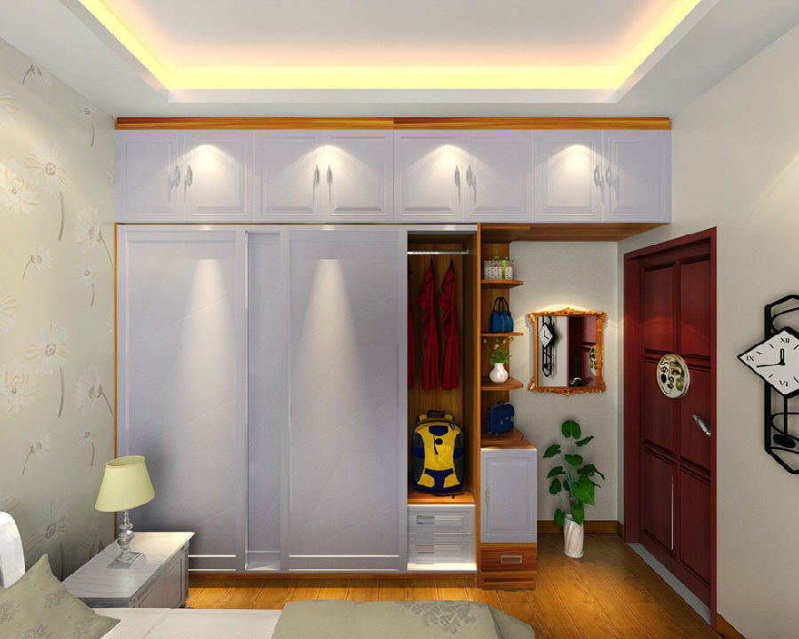 清新淡雅的莫蘭迪配色,讓整個視覺更加飽滿。純白色的衣柜顏色,讓整體布局更顯寬闊,也更具有空間感,視覺體驗上也多了一份高雅,在燈光的照耀下,更加清新脫俗。