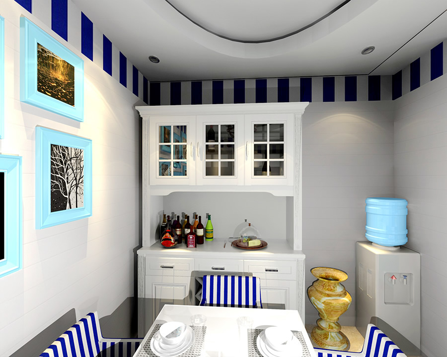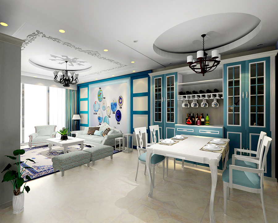首先被吸引的就是色彩的搭配,顏色大膽卻不會(huì)覺(jué)得過(guò)于浮夸,在圓形吊頂?shù)囊r托下,一切渾然天成,精致的餐桌與餐椅交相輝映,極簡(jiǎn)中透露出一股子小清新。