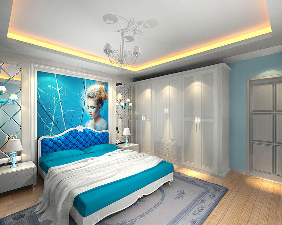 清新淡雅的顏色與純白色的衣柜,整體造型更顯別致優(yōu)雅。淡藍(lán)色大面積使用,整體布局更顯浪漫清新。造型別致的吊燈使用,更加強了整體的流露,也更加凸顯主人對生活品質(zhì)有極高的追求。