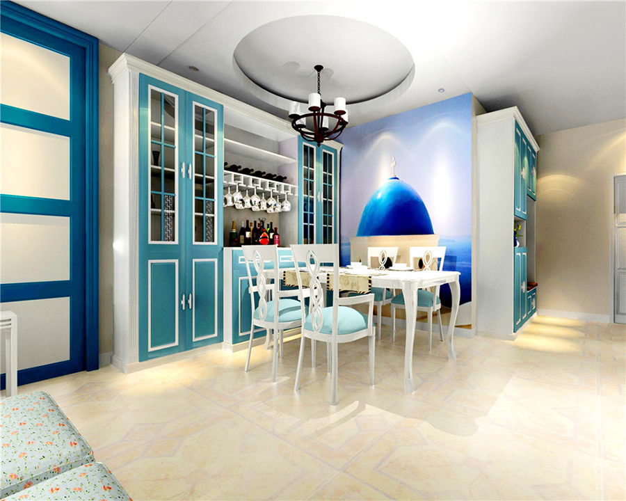 首先被吸引的就是色彩的搭配,顏色大膽卻不會(huì)覺(jué)得過(guò)于浮夸,在圓形吊頂?shù)囊r托下,一切渾然天成,精致的餐桌與餐椅交相輝映,極簡(jiǎn)中透露出一股子小清新。