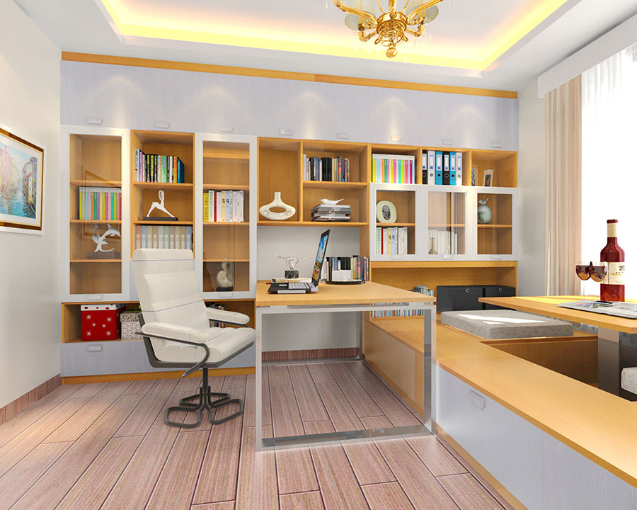 純白色與暖黃色的完美契合,讓整體空間更顯得溫馨與舒適,也能更好的保護(hù)視力。書房,本是一個(gè)令人寧心靜氣的地方,柔和的色彩會讓人更快的投入其中,獨(dú)立的空間,讓您更高效率的工作與學(xué)習(xí)。
